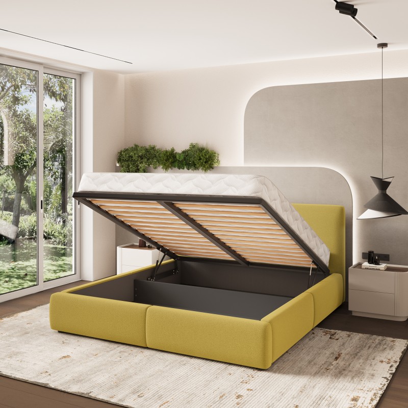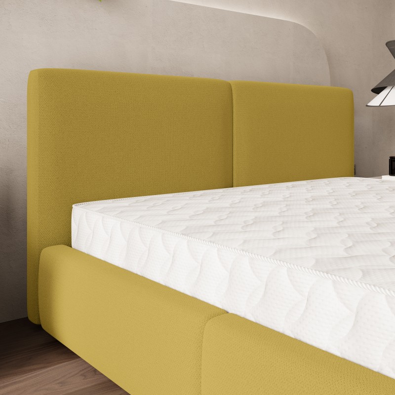 Masseno Łóżko tapicerowane FELURO z pojemnikiem na pościel 140x200 cm - Żółty, SORO 40
