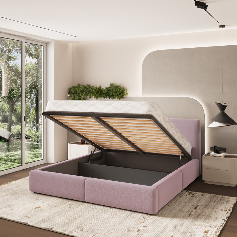 - Wyposażony w mechanizm wspomagający unoszenie, dzięki któremu dostęp do schowka jest szybki i bezproblemowy. Stelaż jest solidny, stabilny i przystosowany do różnych typów materacy.
