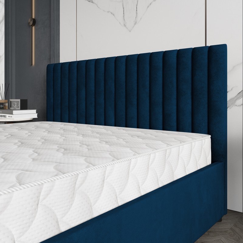 Łóżko CARMIA w tkaninie Kronos to esencja luksusu w nowoczesnym wydaniu. Jego wyraziste, pionowe przeszycia zdobią nie tylko wezgłowie, ale także front łóżka, dzięki czemu całość prezentuje się niezwykle stylowo i efektownie. To model stworzony z myślą o wnętrzach w klimacie glamour – pełnych elegancji, szyku i wyjątkowego charakteru.