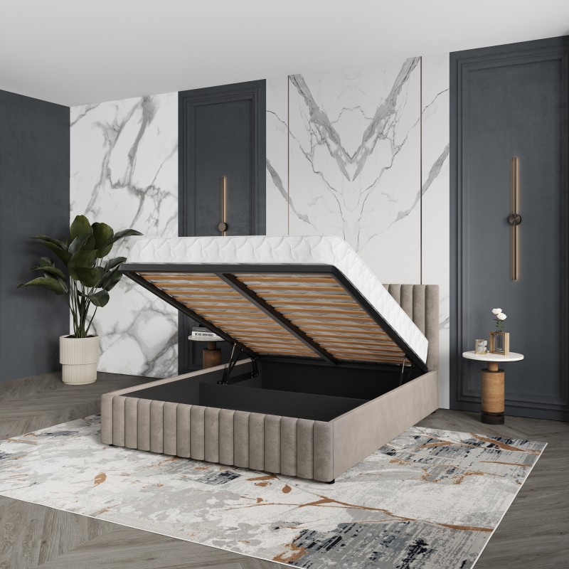 Masseno Łóżko tapicerowane CARMIA z pojemnikiem na pościel 160x200 cm - Beżowy, PAROS 02