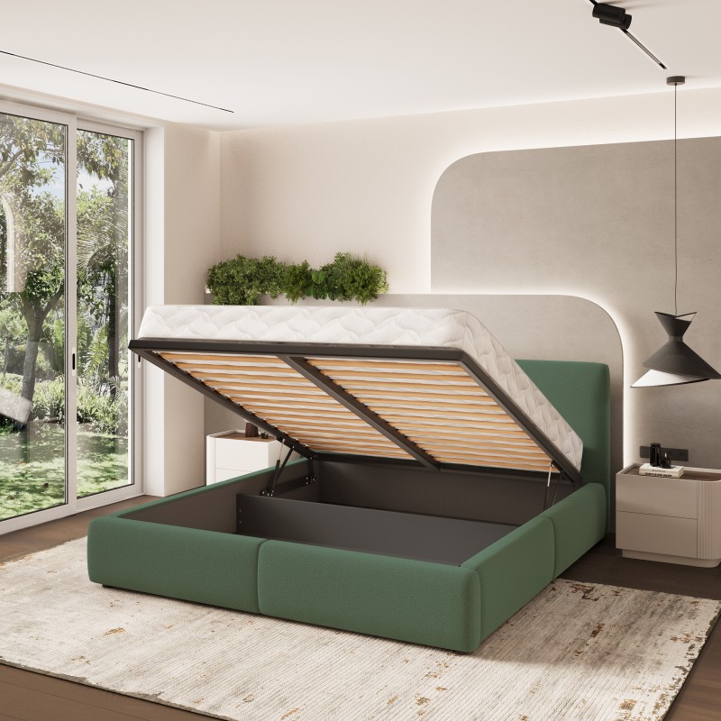 Masseno Łóżko tapicerowane FELURO z pojemnikiem na pościel 160x200 cm - Zielony, SORO 72