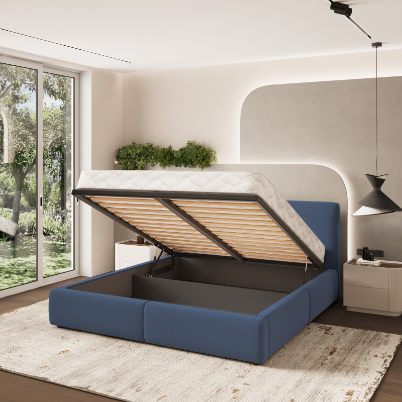 Masseno Łóżko tapicerowane FELURO z pojemnikiem na pościel 160x200 cm - Niebieski, SORO 76