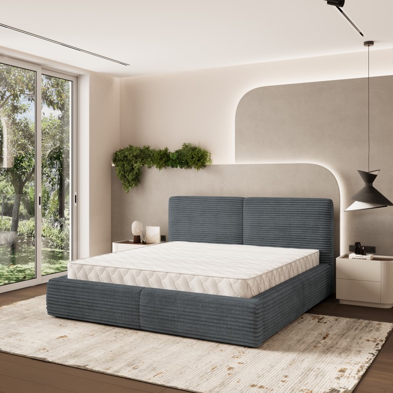Obicie w tkaninie TILIA nadaje całości wyjątkowego charakteru. Grube prążki z miękkiego weluru sprawiają, że łóżko prezentuje się niezwykle elegancko, a jednocześnie pozostaje uniwersalne i łatwe w aranżacji. TILIA jest przyjemna w dotyku, odporna na codzienne użytkowanie i świetnie komponuje się zarówno z nowoczesnymi, jak i skandynawskimi wnętrzami. FELURO zostało zaprojektowane tak, by odpowiadać na codzienne potrzeby. Podnoszony stelaż z mechanizmem wspomagającym otwieranie, pozwala bez wysiłku dostać się do pojemnego schowka na pościel z materiałowym dnem. Dzięki temu przechowywanie kołder, poduszek i koców staje się wygodne, a sypialnia zawsze zachowuje porządek. Standardowe wymiary z pomogą Ci z łatwością dobrać idealny materac.