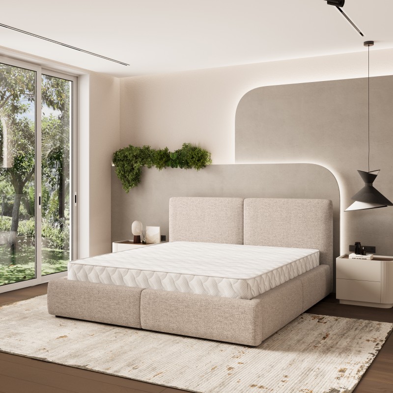 Masseno Łóżko tapicerowane FELURO z pojemnikiem na pościel 160x200 cm - Beżowy, NEVE 04