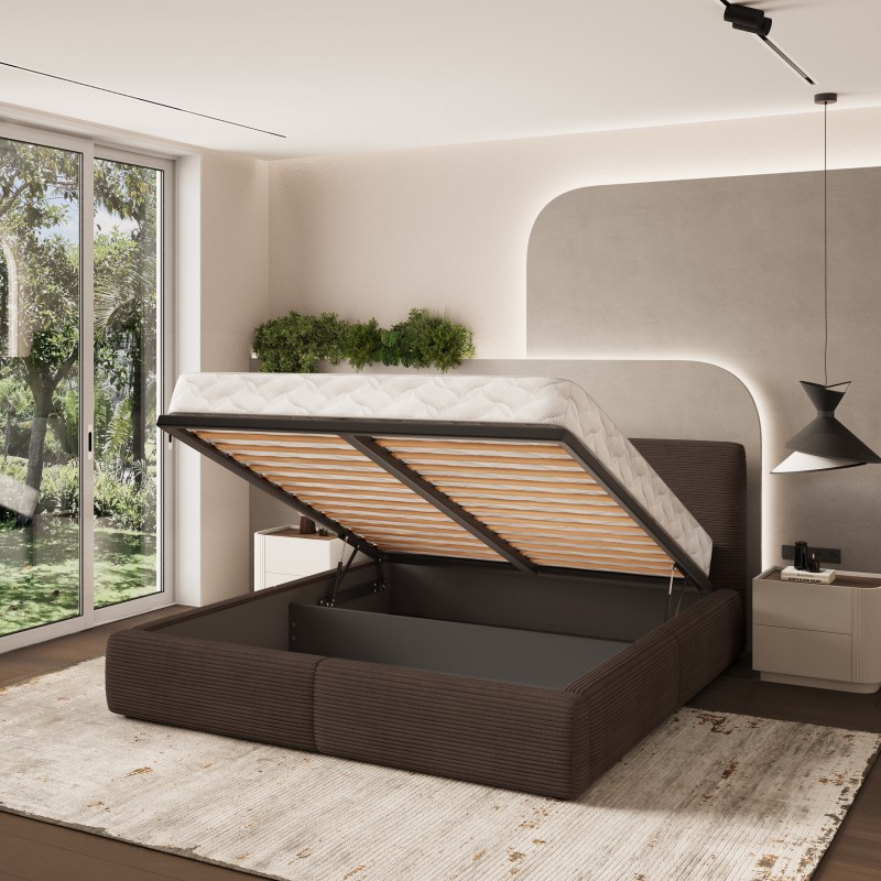 Masseno Łóżko tapicerowane FELURO z pojemnikiem na pościel 160x200 cm - Brązowy, POSO 06