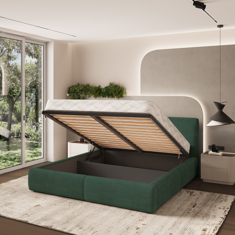 Masseno Łóżko tapicerowane FELURO z pojemnikiem na pościel 160x200 cm - Zielony, POSO 14