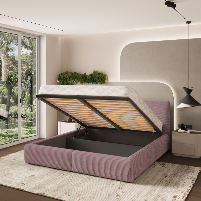 Masseno Łóżko tapicerowane FELURO z pojemnikiem na pościel 160x200 cm - Wrzosowy, POSO 130