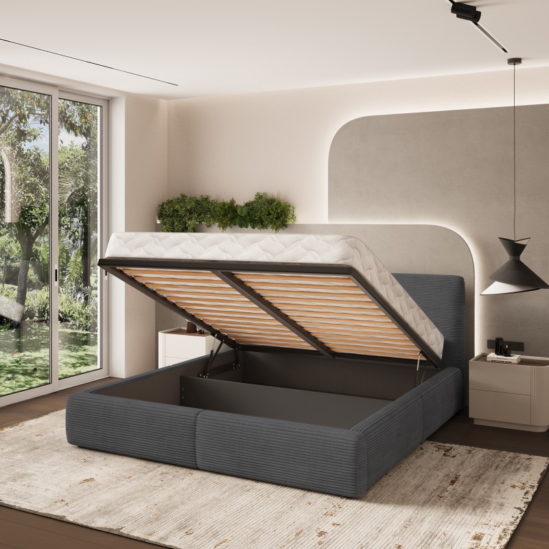 Masseno Łóżko tapicerowane FELURO z pojemnikiem na pościel 160x200 cm - Grafitowy, POSO 34