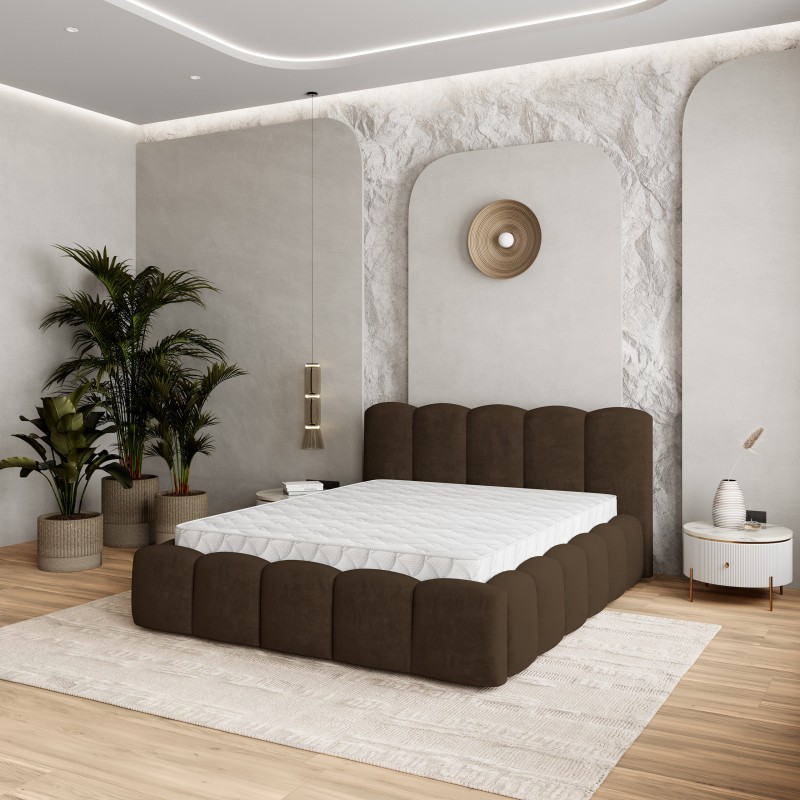 Masseno Łóżko tapicerowane FALINA z pojemnikiem na pościel 160x200 cm - Brązowy, KRONOS 06