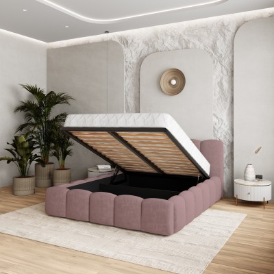 Masseno Łóżko tapicerowane FALINA z pojemnikiem na pościel 160x200 cm - Pudrowy róż, KRONOS 27