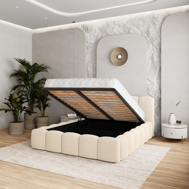 Masseno Łóżko tapicerowane FALINA z pojemnikiem na pościel 160x200 cm - Kremowy, QUELLE 02