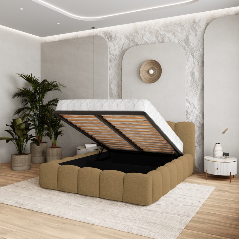 Masseno Łóżko tapicerowane FALINA z pojemnikiem na pościel 160x200 cm - Miodowy, QUELLE 17