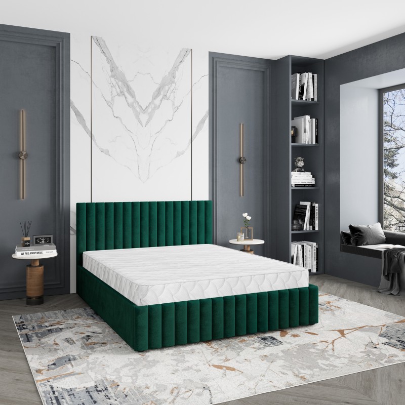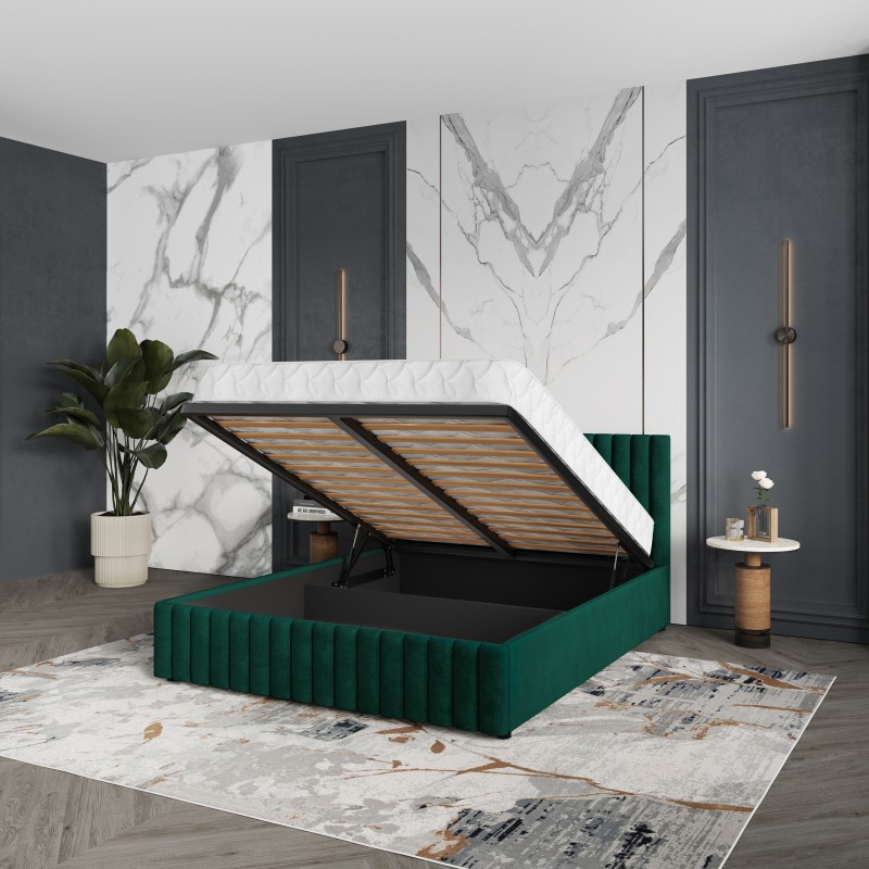 Masseno Łóżko tapicerowane CARMIA z pojemnikiem na pościel 180x200 cm - Butelkowa zieleń, KRONOS 19