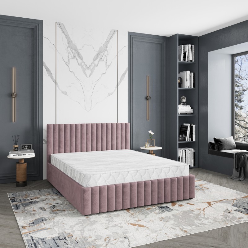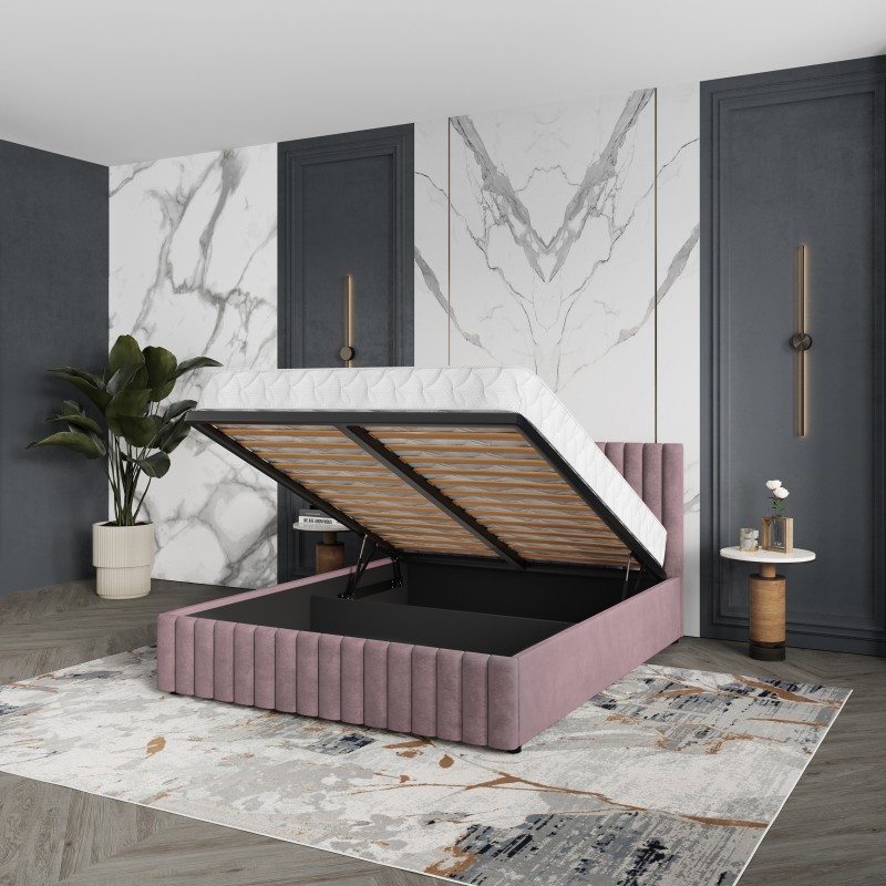 Masseno Łóżko tapicerowane CARMIA z pojemnikiem na pościel 180x200 cm - Pudrowy róż, KRONOS 27
