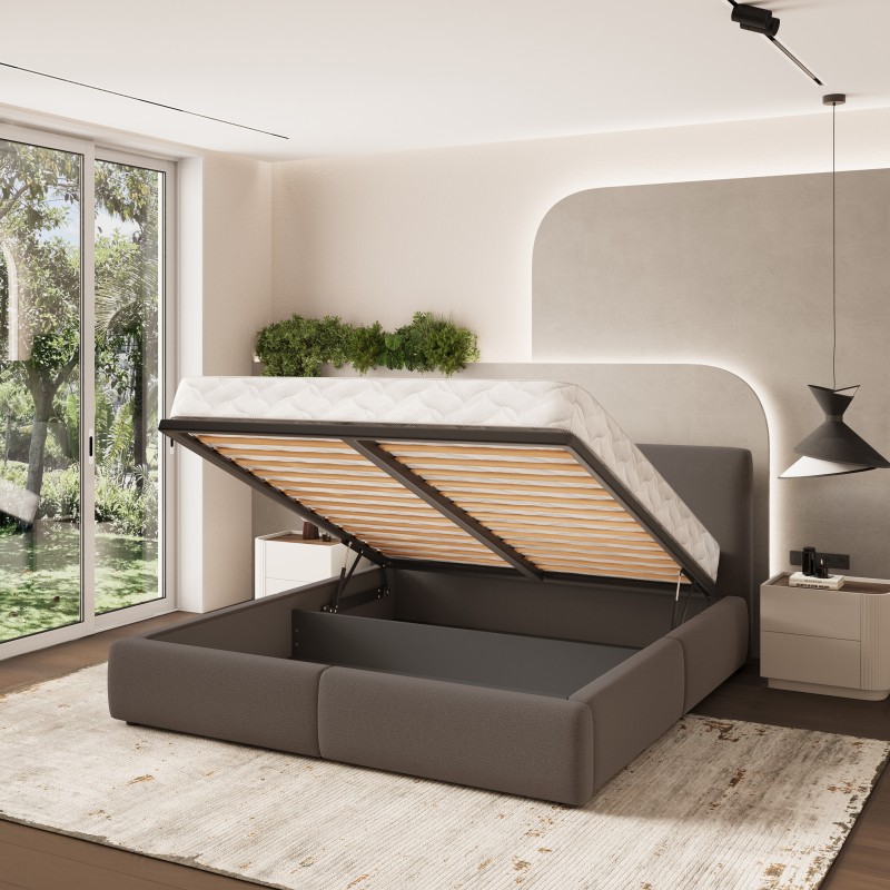 - Wyposażony w mechanizm wspomagający unoszenie, dzięki któremu dostęp do schowka jest szybki i bezproblemowy. Stelaż jest solidny, stabilny i przystosowany do różnych typów materacy.