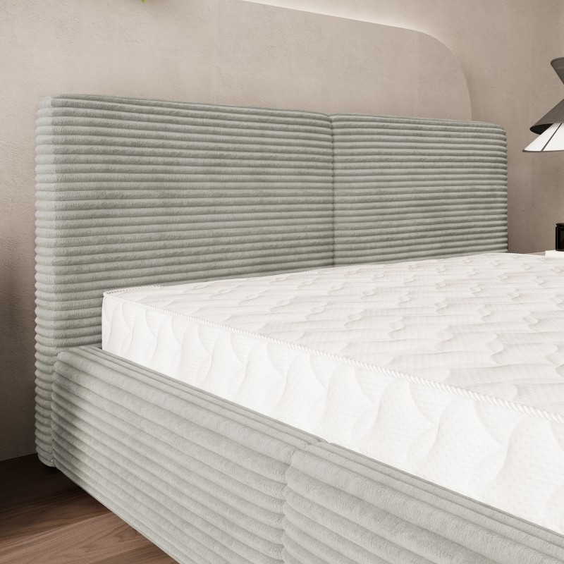 Obicie w tkaninie TILIA nadaje całości wyjątkowego charakteru. Grube prążki z miękkiego weluru sprawiają, że łóżko prezentuje się niezwykle elegancko, a jednocześnie pozostaje uniwersalne i łatwe w aranżacji. TILIA jest przyjemna w dotyku, odporna na codzienne użytkowanie i świetnie komponuje się zarówno z nowoczesnymi, jak i skandynawskimi wnętrzami. FELURO zostało zaprojektowane tak, by odpowiadać na codzienne potrzeby. Podnoszony stelaż z mechanizmem wspomagającym otwieranie, pozwala bez wysiłku dostać się do pojemnego schowka na pościel z materiałowym dnem. Dzięki temu przechowywanie kołder, poduszek i koców staje się wygodne, a sypialnia zawsze zachowuje porządek. Standardowe wymiary z pomogą Ci z łatwością dobrać idealny materac.