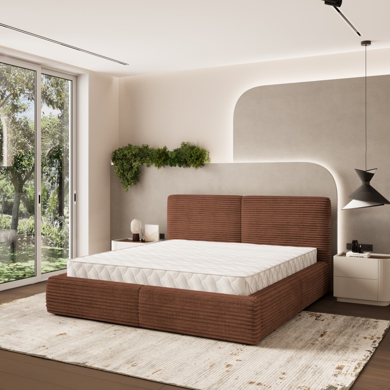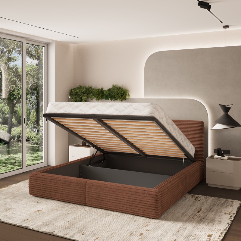 Masseno Łóżko tapicerowane FELURO z pojemnikiem na pościel 180x200 cm - Brązowy, TILIA 52