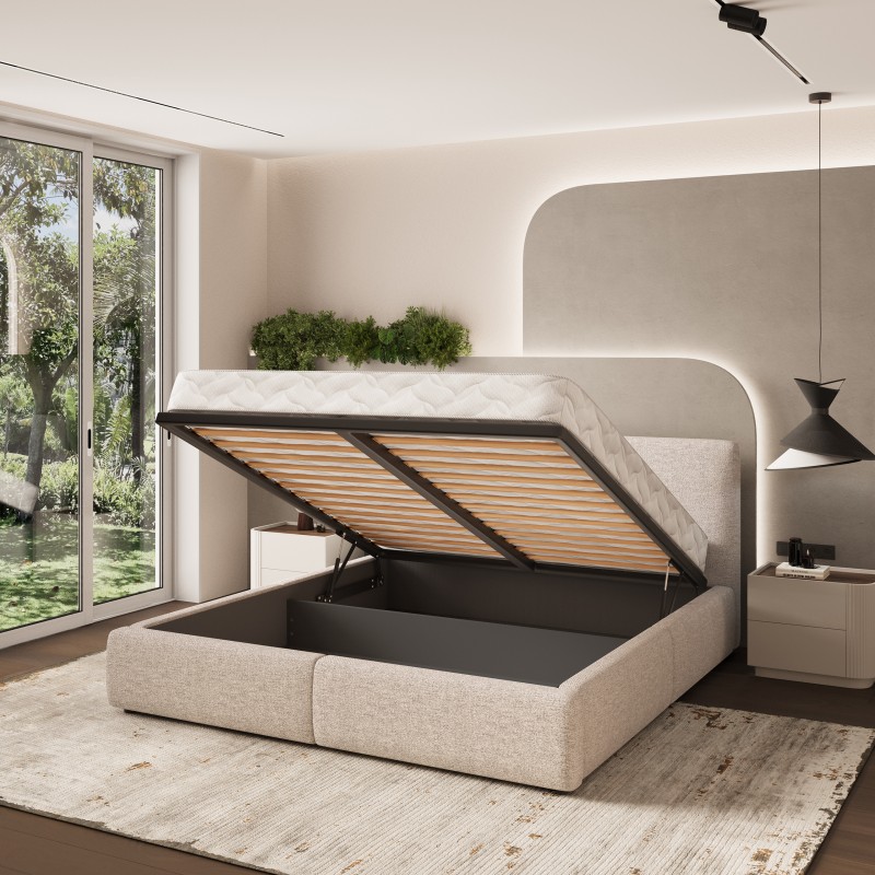 Masseno Łóżko tapicerowane FELURO z pojemnikiem na pościel 180x200 cm - Beżowy, NEVE 04