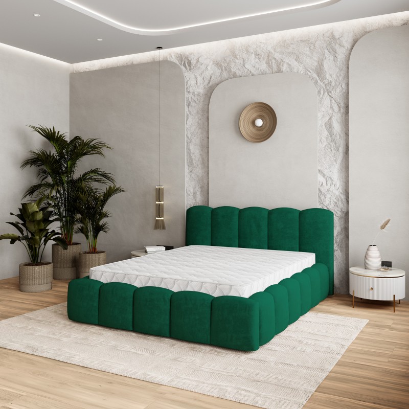 Masseno Łóżko tapicerowane FALINA z pojemnikiem na pościel 180x200 cm - Butelkowa zieleń, KRONOS 19