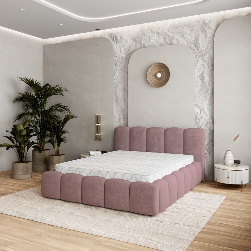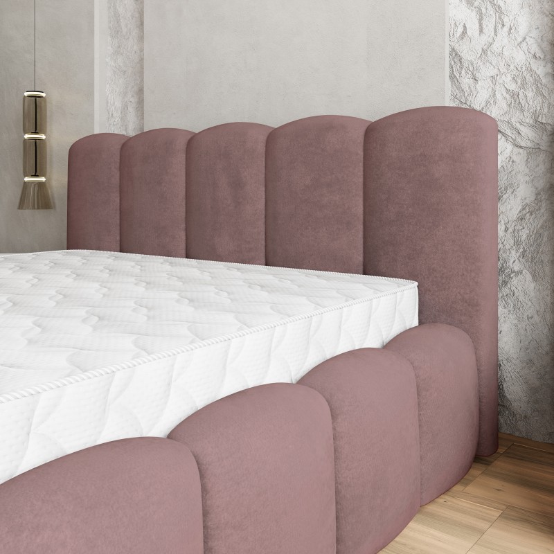 Masseno Łóżko tapicerowane FALINA z pojemnikiem na pościel 180x200 cm - Pudrowy róż, KRONOS 27