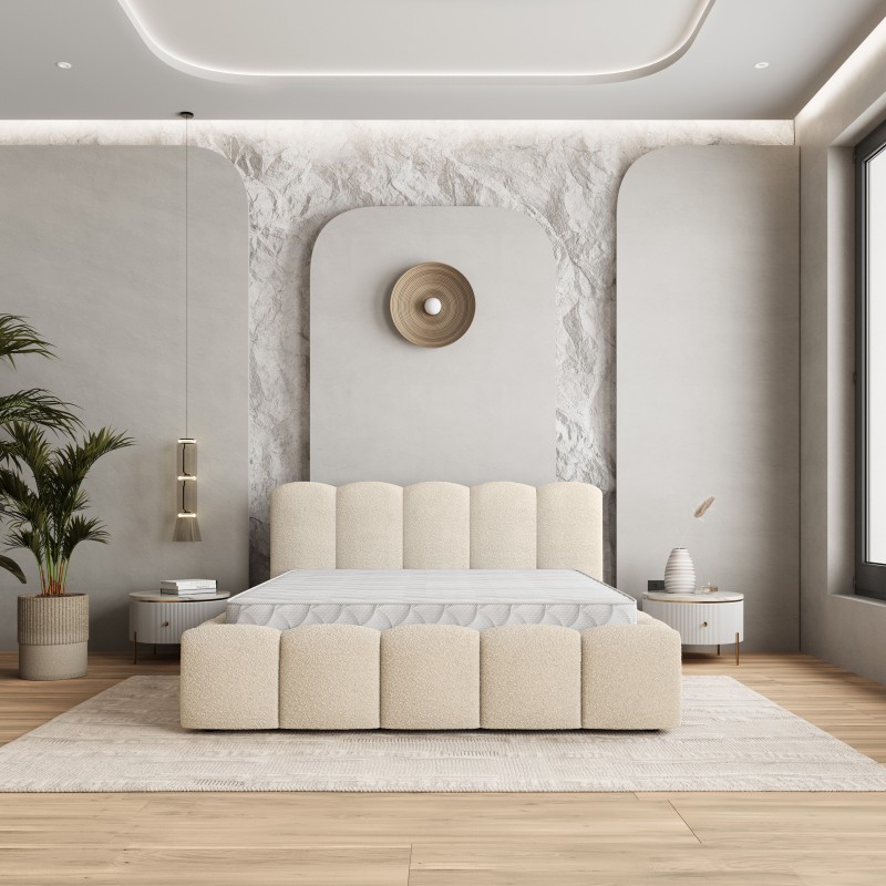 Masseno Łóżko tapicerowane FALINA z pojemnikiem na pościel 180x200 cm - Kremowy, QUELLE 02