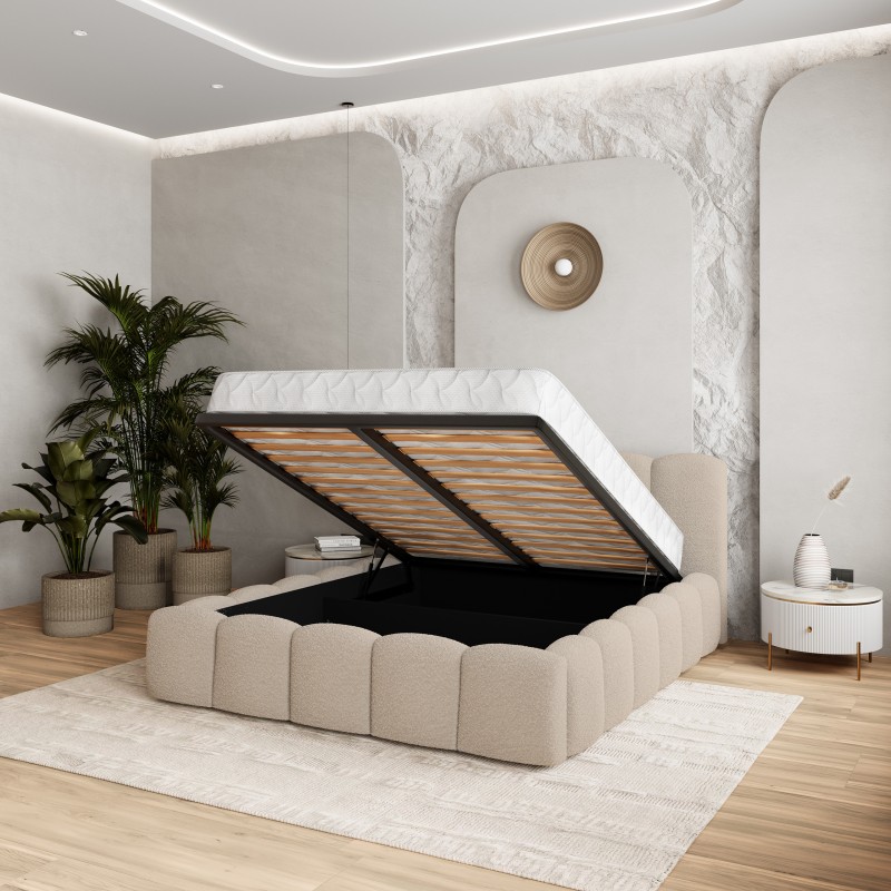 Masseno Łóżko tapicerowane FALINA z pojemnikiem na pościel 180x200 cm - Beżowy, QUELLE 05