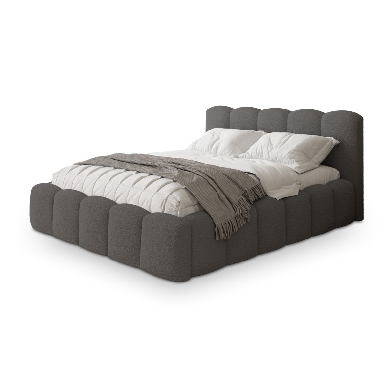 Tkanina Quelle to miękka bouclé o wyrazistej, pętelkowej strukturze. Przyjemna w dotyku, a jednocześnie niezwykle stylowa, doskonale wpisuje się w aktualne trendy wnętrzarskie. Jej nowoczesny, lekko surowy charakter łączy się z przytulnością, sprawiając, że łóżko FALINA pasuje zarówno do wnętrz modernistycznych, jak i tych inspirowanych stylem skandynawskim czy loftowym. Model FALINA to jednak nie tylko wyjątkowy design, ale także praktyczne rozwiązania. Łóżko wyposażono w obszerny schowek na pościel, otwierany za pomocą podnoszonego stelaża z mechanizmem wspomagającym. Spód pojemnika został wykończony tkaniną, co nie tylko dodaje estetyki, ale także zabezpiecza podłogę pod łóżkiem. Dzięki temu korzystanie ze schowka jest wygodne, bezpieczne i funkcjonalne.