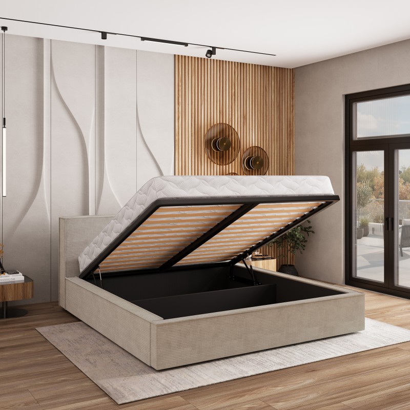 Masseno Łóżko tapicerowane CELORA z pojemnikiem na pościel 180x200 cm - Beżowy, POSO 02
