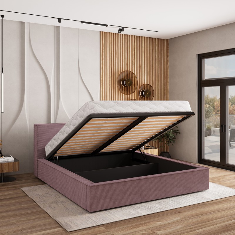 Masseno Łóżko tapicerowane CELORA z pojemnikiem na pościel 180x200 cm - Wrzosowy, POSO 130