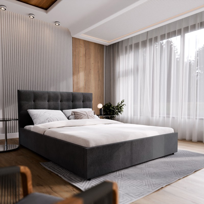 Każdy detal, od miękkiego w dotyku obicia po staranne wykończenie, został zaprojektowany, by zapewnić Ci głęboki, regenerujący sen i poczucie luksusu – każdej nocy. Wykorzystaj maksymalnie potencjał swojej sypialni dzięki praktycznym rozwiązaniom do przechowywania. Łóżko wyposażone jest w podnoszony stelaż, wspierany przez niezawodny mechanizm. Dzięki temu, dostęp do obszernego schowka na pościel jest całkowicie bezwysiłkowy.