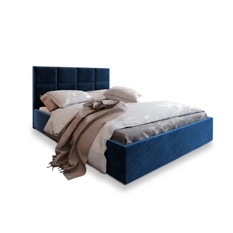 Masseno Łóżko tapicerowane LIMENA z pojemnikiem na pościel 160x200 cm - Niebieski, KRONOS 09