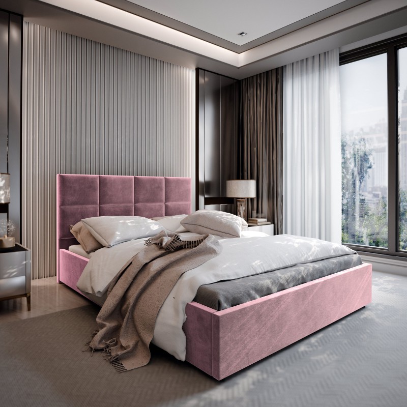 Masseno Łóżko tapicerowane LIMENA z pojemnikiem na pościel 160x200 cm - Pudrowy róż, KRONOS 27