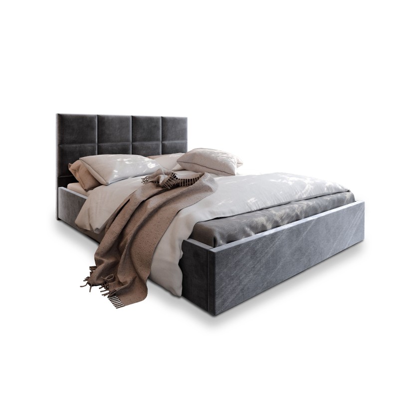 Masseno Łóżko tapicerowane LIMENA z pojemnikiem na pościel 160x200 cm - Szary, PAROS 06