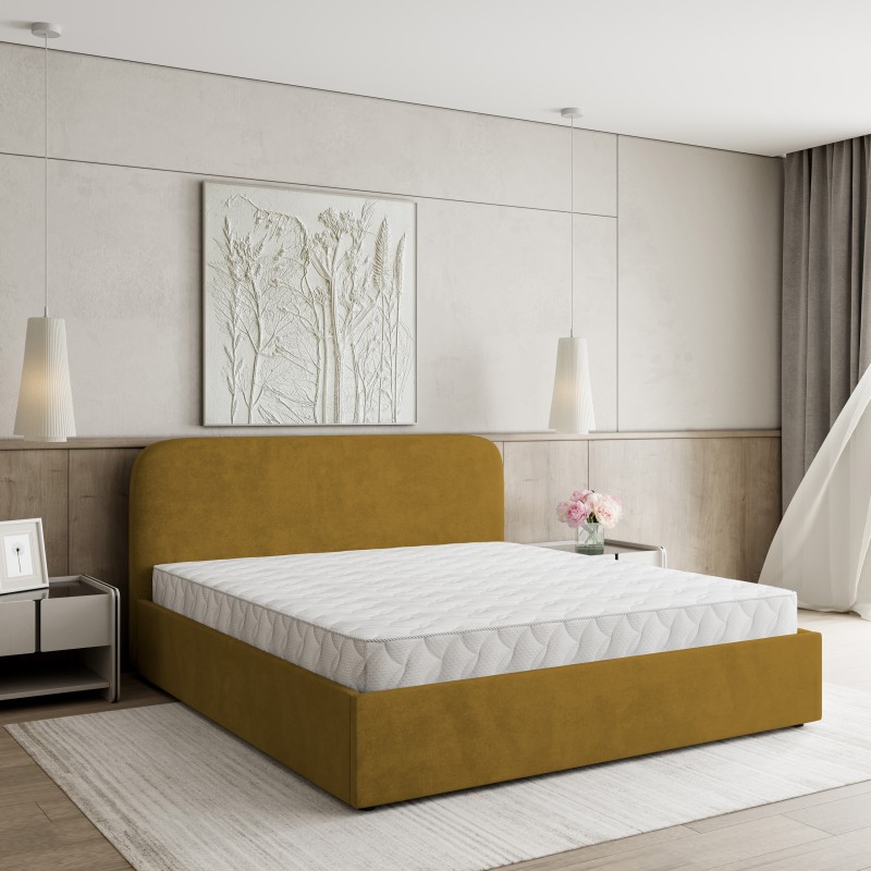 Masseno Łóżko tapicerowane RENIVE z pojemnikiem na pościel 160x200 cm - Żółty, KRONOS 01