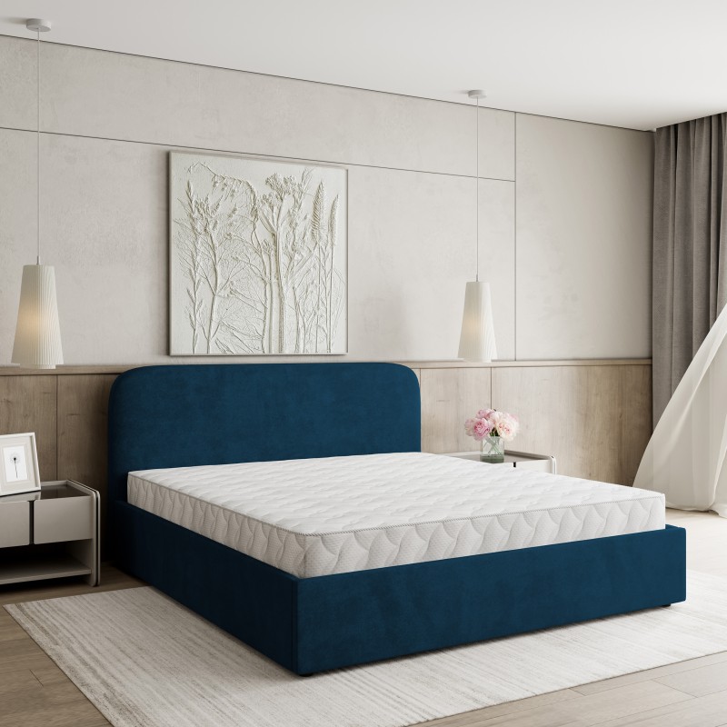 Masseno Łóżko tapicerowane RENIVE z pojemnikiem na pościel 160x200 cm - Niebieski, KRONOS 09