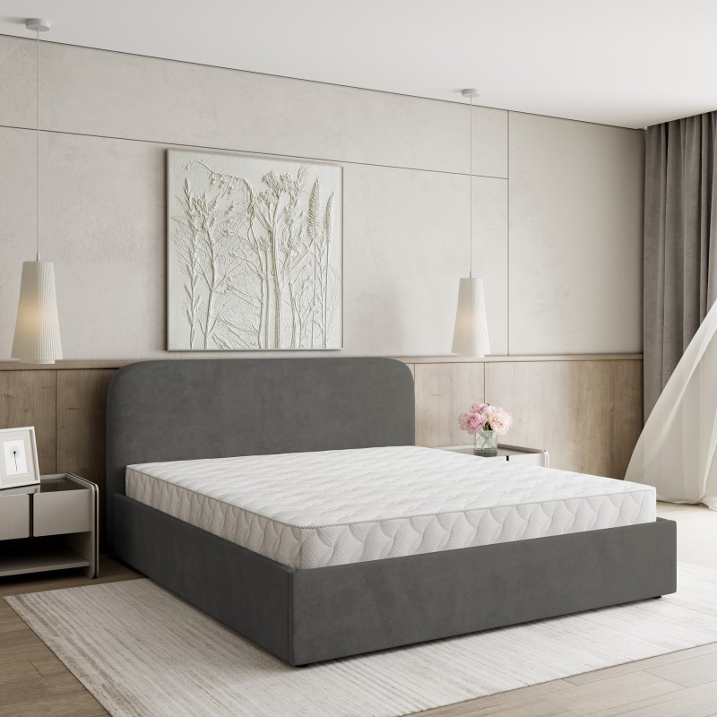 Masseno Łóżko tapicerowane RENIVE z pojemnikiem na pościel 160x200 cm - Szary, KRONOS 15