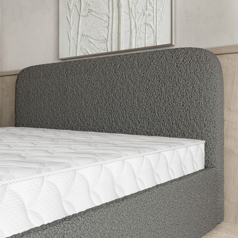 - Tapicerowany, miękki zagłówek to obietnica wyjątkowego komfortu i wysokiej jakości wypoczynku. Dzięki niemu łóżko staje się idealnym oparciem podczas wieczornej lektury czy relaksu. Całość wykończona jest przyjemną w dotyku tkaniną, nadającą modny i luksusowy wygląd.