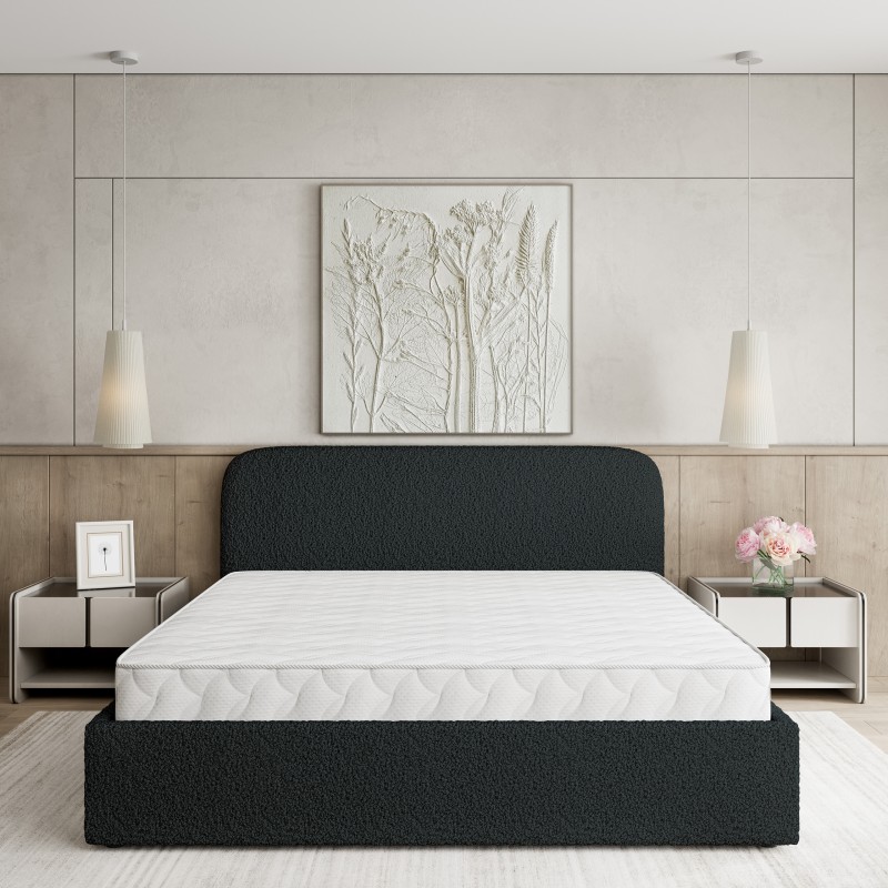 - Tapicerowany, miękki zagłówek to obietnica wyjątkowego komfortu i wysokiej jakości wypoczynku. Dzięki niemu łóżko staje się idealnym oparciem podczas wieczornej lektury czy relaksu. Całość wykończona jest przyjemną w dotyku tkaniną, nadającą modny i luksusowy wygląd.