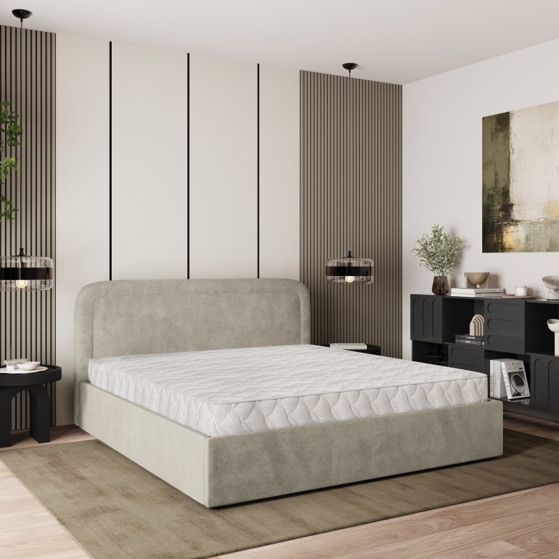 Masseno Łóżko tapicerowane BENIRA z pojemnikiem na pościel 160x200 cm - Beżowy, PAROS 02