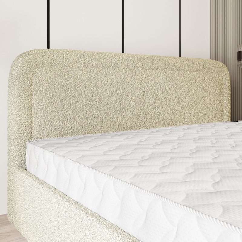 - Tapicerowany, miękki zagłówek to obietnica wyjątkowego komfortu i wysokiej jakości wypoczynku. Dzięki niemu łóżko staje się idealnym oparciem podczas wieczornej lektury czy relaksu. Całość wykończona jest przyjemną w dotyku tkaniną, nadającą modny i luksusowy wygląd.