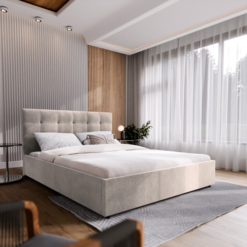 Masseno Łóżko tapicerowane APE z pojemnikiem na pościel 180x200 cm - Beżowy, COSMIC 10