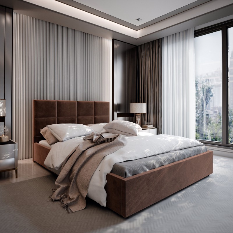 Każdy detal, od miękkiego w dotyku obicia po staranne wykończenie, został zaprojektowany, by zapewnić Ci głęboki, regenerujący sen i poczucie luksusu – każdej nocy. Wykorzystaj maksymalnie potencjał swojej sypialni dzięki praktycznym rozwiązaniom do przechowywania. Łóżko wyposażone jest w podnoszony stelaż, wspierany przez niezawodny mechanizm. Dzięki temu, dostęp do obszernego schowka na pościel jest całkowicie bezwysiłkowy.
