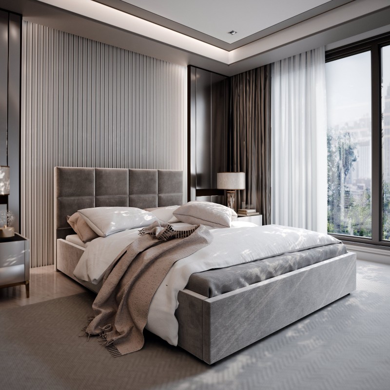 Każdy detal, od miękkiego w dotyku obicia po staranne wykończenie, został zaprojektowany, by zapewnić Ci głęboki, regenerujący sen i poczucie luksusu – każdej nocy. Wykorzystaj maksymalnie potencjał swojej sypialni dzięki praktycznym rozwiązaniom do przechowywania. Łóżko wyposażone jest w podnoszony stelaż, wspierany przez niezawodny mechanizm. Dzięki temu, dostęp do obszernego schowka na pościel jest całkowicie bezwysiłkowy.