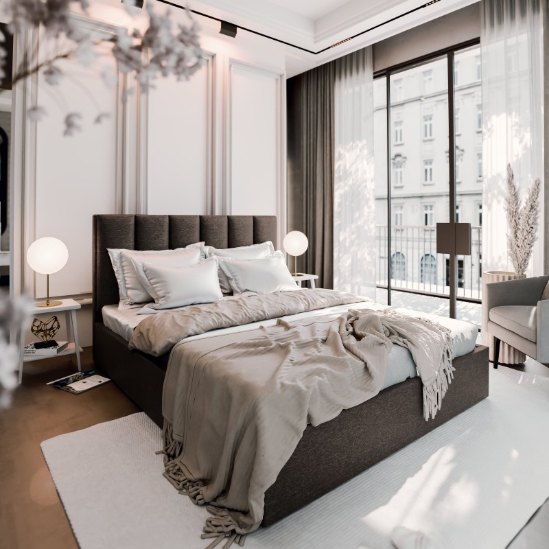 Każdy detal, od miękkiego w dotyku obicia po staranne wykończenie, został zaprojektowany, by zapewnić Ci głęboki, regenerujący sen i poczucie luksusu – każdej nocy. Wykorzystaj maksymalnie potencjał swojej sypialni dzięki praktycznym rozwiązaniom do przechowywania. Łóżko wyposażone jest w podnoszony stelaż, wspierany przez niezawodny mechanizm. Dzięki temu, dostęp do obszernego schowka na pościel jest całkowicie bezwysiłkowy.