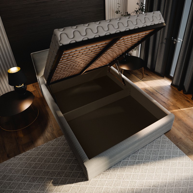 Każdy detal, od miękkiego w dotyku obicia po staranne wykończenie, został zaprojektowany, by zapewnić Ci głęboki, regenerujący sen i poczucie luksusu – każdej nocy. Wykorzystaj maksymalnie potencjał swojej sypialni dzięki praktycznym rozwiązaniom do przechowywania. Łóżko wyposażone jest w podnoszony stelaż, wspierany przez niezawodny mechanizm. Dzięki temu, dostęp do obszernego schowka na pościel jest całkowicie bezwysiłkowy.