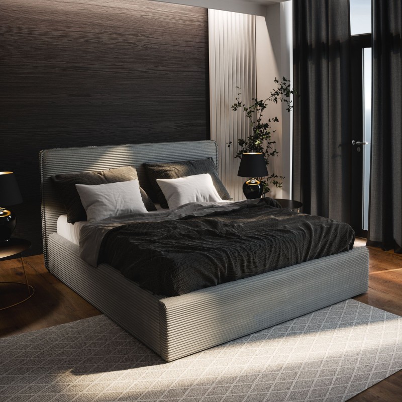 Każdy detal, od miękkiego w dotyku obicia po staranne wykończenie, został zaprojektowany, by zapewnić Ci głęboki, regenerujący sen i poczucie luksusu – każdej nocy. Wykorzystaj maksymalnie potencjał swojej sypialni dzięki praktycznym rozwiązaniom do przechowywania. Łóżko wyposażone jest w podnoszony stelaż, wspierany przez niezawodny mechanizm. Dzięki temu, dostęp do obszernego schowka na pościel jest całkowicie bezwysiłkowy.