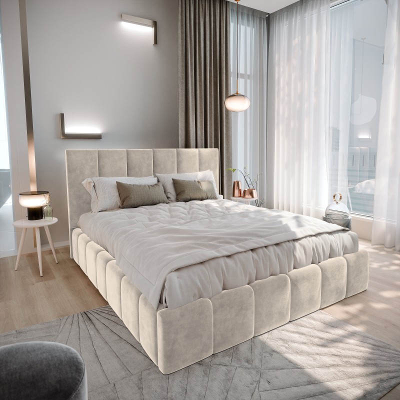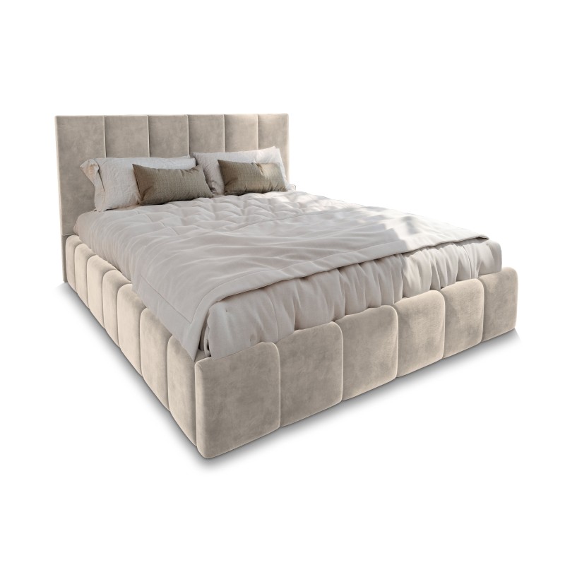 Masseno Łóżko tapicerowane TARANTO z pojemnikiem na pościel 180x200 cm - Kremowy, MONOLITH 04