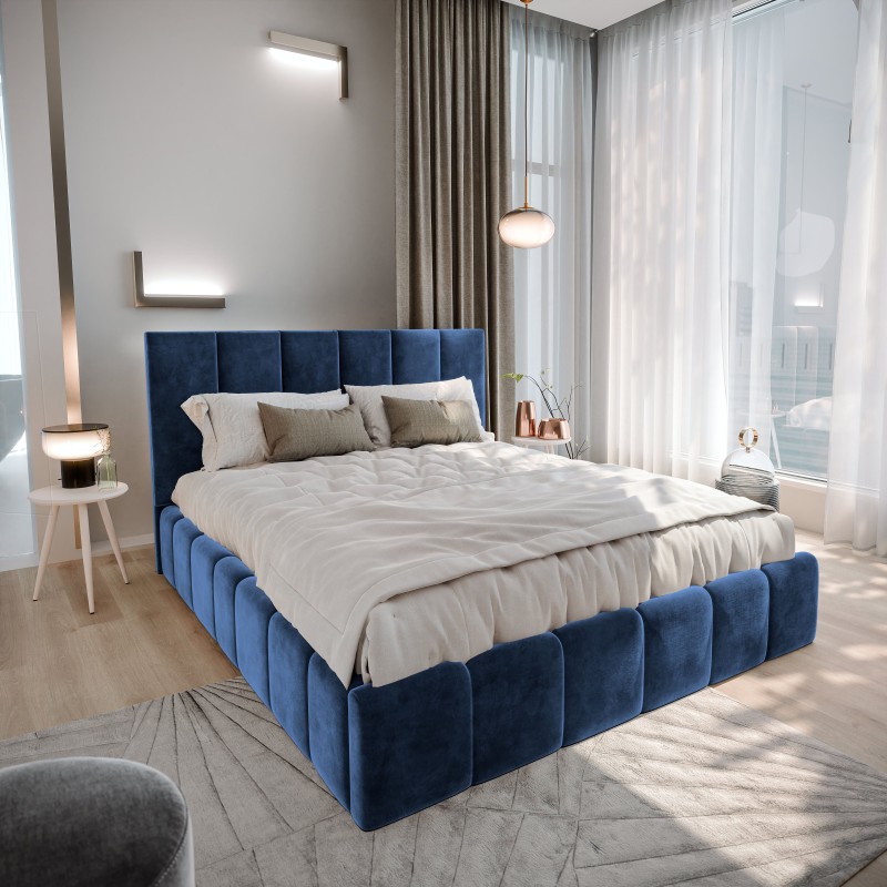 Masseno Łóżko tapicerowane TARANTO z pojemnikiem na pościel 180x200 cm - Niebieski, MONOLITH 77