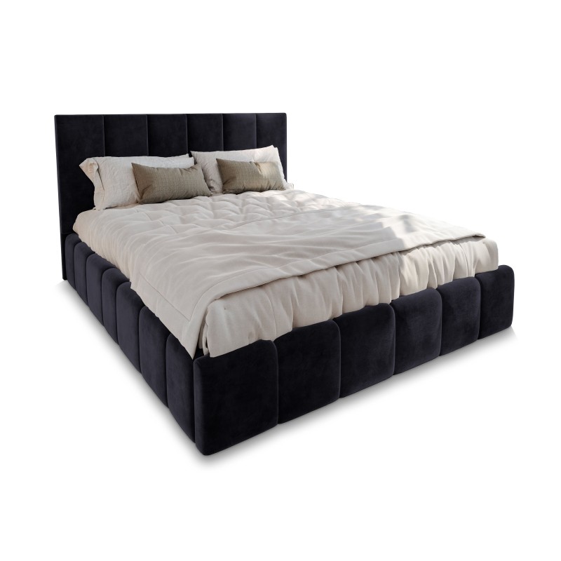 Masseno Łóżko tapicerowane TARANTO z pojemnikiem na pościel 180x200 cm - Czarny, MONOLITH 95