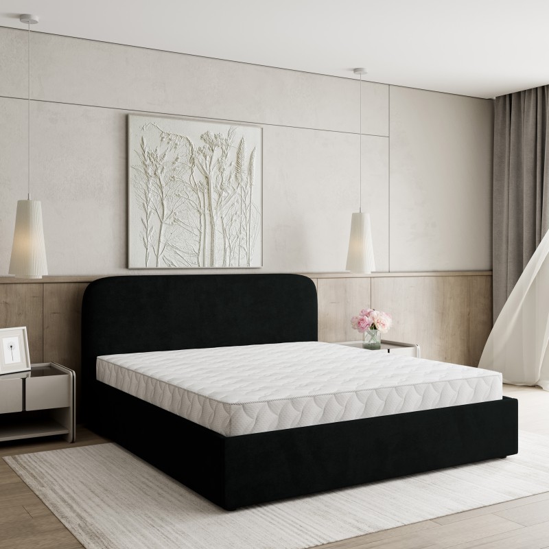 Masseno Łóżko tapicerowane RENIVE z pojemnikiem na pościel 180x200 cm - Czarny, KRONOS 07